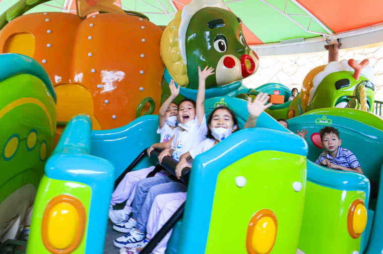 毛毛虫列车沿着起伏的轨道做圆周运动。软萌的毛毛虫造型、欢快的音乐以及有趣的乘骑体验会将轻松愉悦带给每一位游客,是亲子时光的最佳选择。